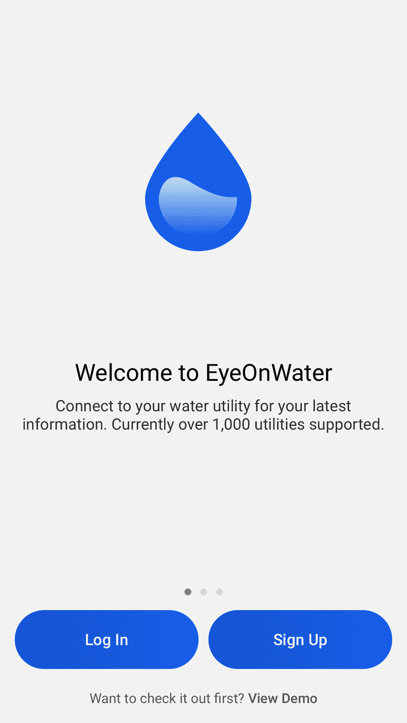 Tap Sign Up to begin creating a new EyeOnWater account.