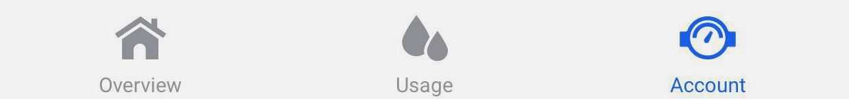 - Usage for each year your account has been active.From any of these screens, tap to select a day, week, month or year and see how much water you used. Current selections are blue, while other bars of the graph are gray and remain visible to allow you to compare usage.