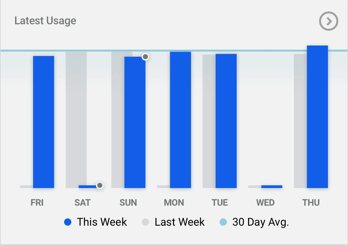 Green dots indicate lower usage than the previous week on that day. In the example above, usage on Saturday and Sunday was lower than during those days of the previous week. Tap the arrow in the upper right corner to jump to the Usage page.